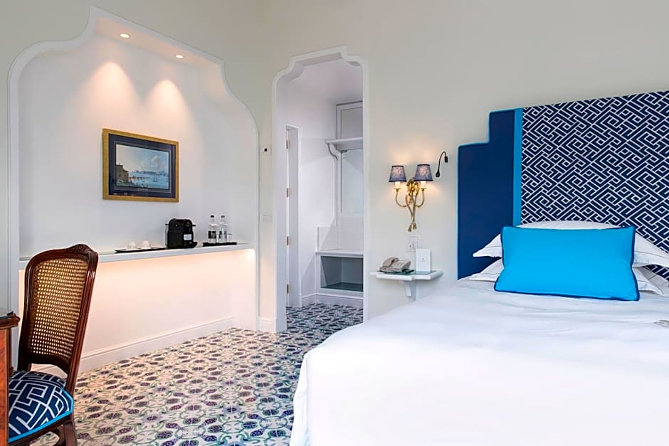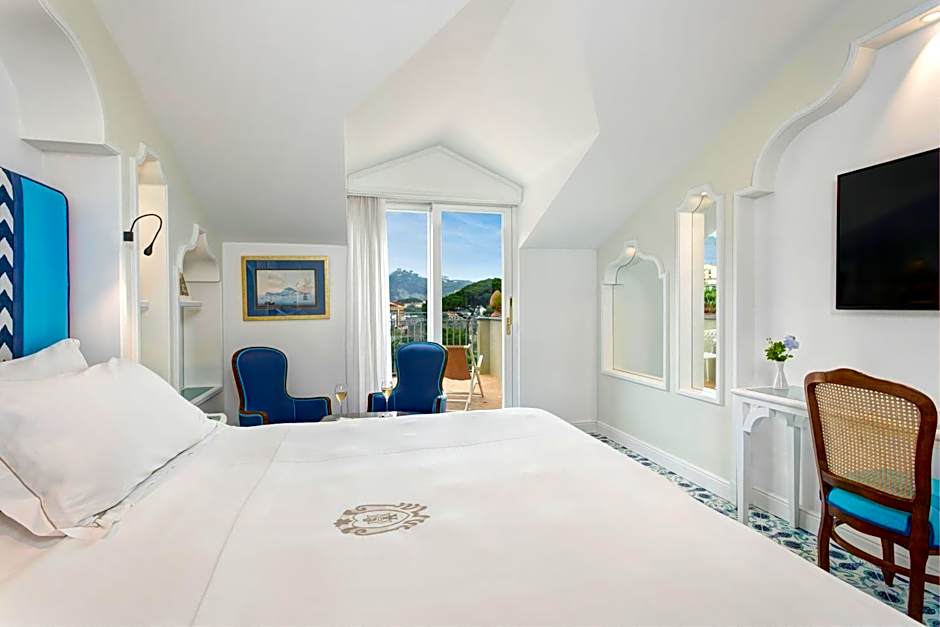 This room has luxurious furnishing and a marble bathroom. The balcony overlooks the garden and offers a lateral sea view. Free Wi-Fi is also available. Includes free access to the beach, use of deck chairs, parasols and towels.